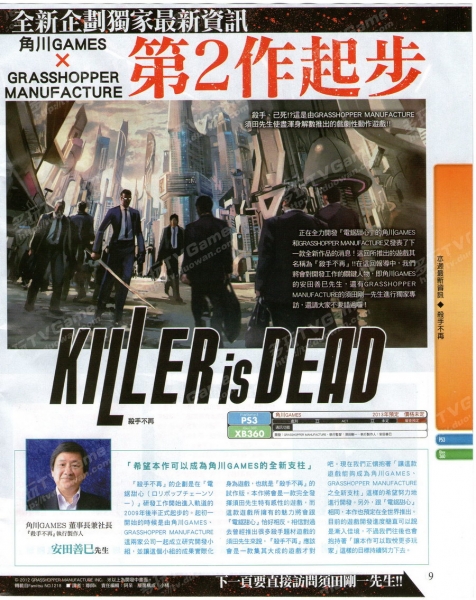 《杀手已死》(Killer is Dead)Fami通中文杂志日前在网络上公开,游戏将登陆PS3和XBOX360平台,具体的游戏发售日期未定。