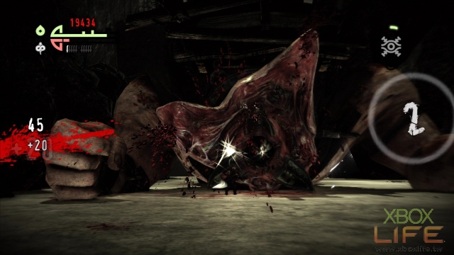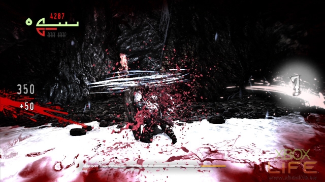 狂暴模式的状态下,游戏画面会以黑白画面呈现,但血溅荧幕的程度仍不减少。