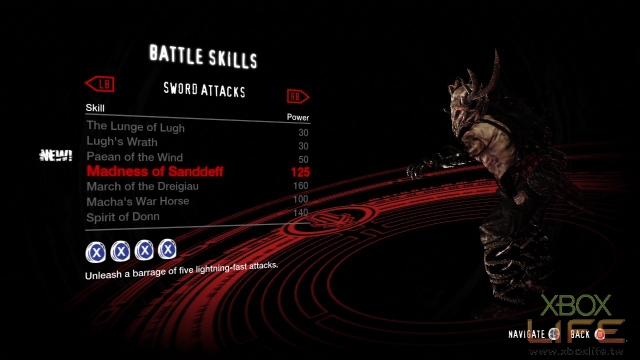 每种武器各自有不同的武器连击技(Weapon Combo),只要按下Back键即能查阅这些招式的用法,并且会在列表上标示每招攻击所输出的伤害。