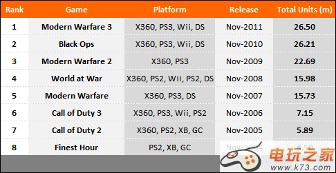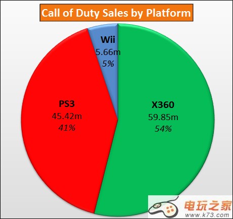 两大高清平台是COD系列的主要销售平台,占了95%,共卖出1亿527万份,而在Wii平台上则只卖出了566万,XBOX360上卖出了5985万份,PS3上则卖出了4542万份!