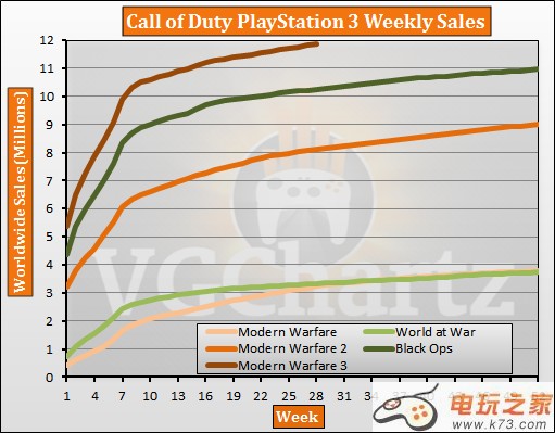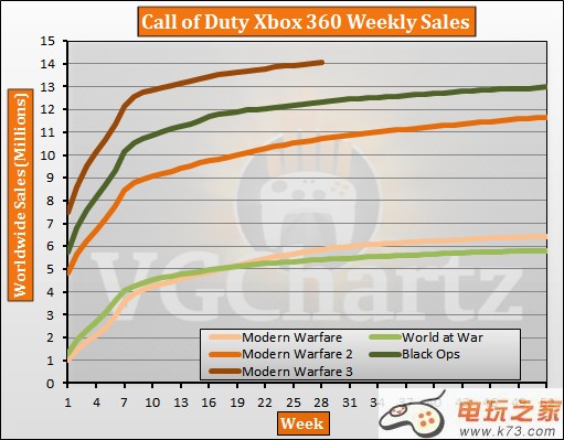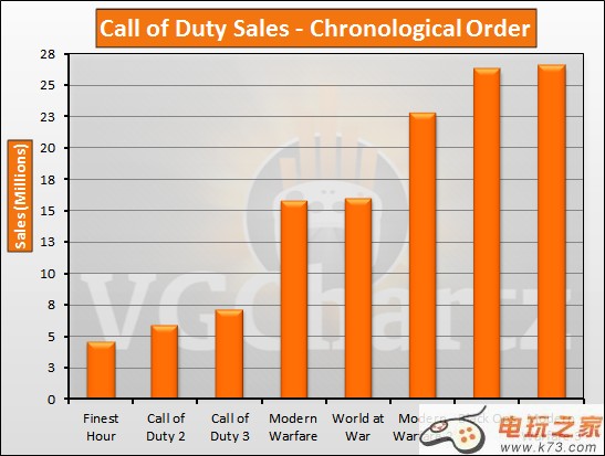 自现代战争发售后,该系列的销售量就大规模攀升!
