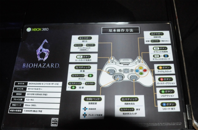 2012 年6月30日及7月1日在东京国际展示场举行的活动CAPCOM SUMMER JAM会场内,展出了预定在2012年10 月4日发售的《生化危机6》(PS3 / Xbox 360 / PC 版发售日未定)的试玩机台。