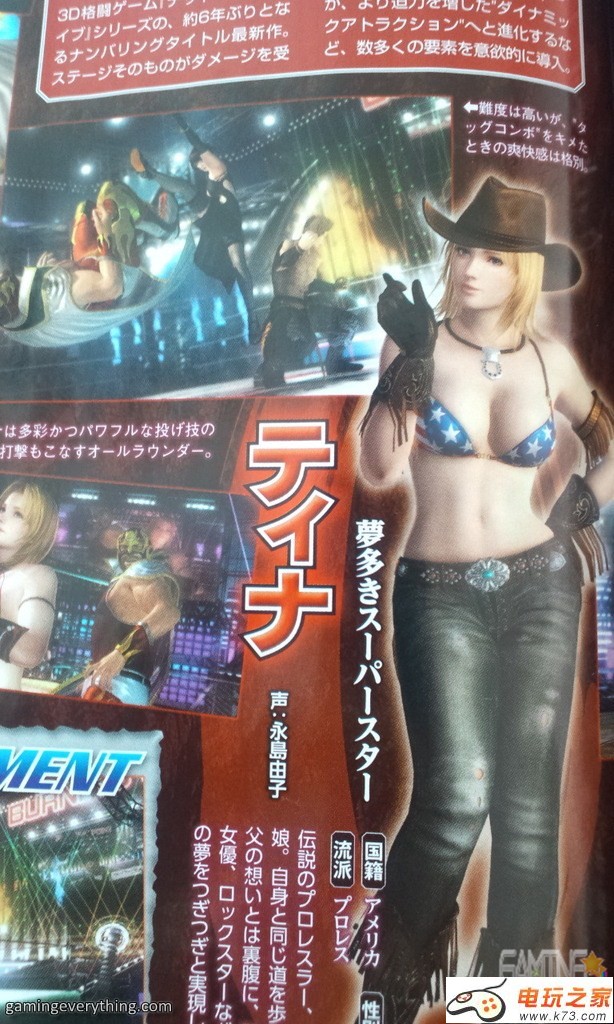 Tecmo Koei预定发售于本次代高清家用机平台的死或生新作《死或生5》在今日的fami通周刊上刊登了两名新角色的杂志图,下面让我们来看看这两位角色吧!