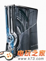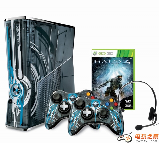 《光环4》限量版主机与无线控制器采用特殊的透明灰外壳搭配主题彩绘纹路。主机与无线控制器的 Xbox 电源钮灯光从标准的萤光绿光源改为符合本作主题色的冷光蓝光源。