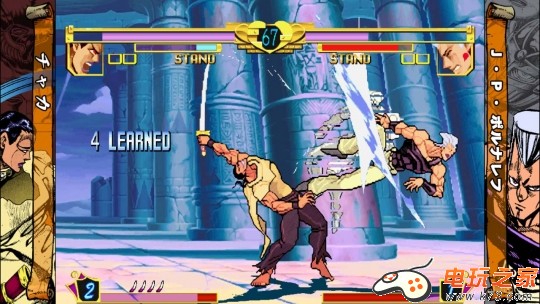 攻击到敌方替身使者或是让对方防御,或是受到敌方替身使者的攻击时,画面下方的超必杀技计量表就会增加。计量表有1以上时就可以使出高威力的「超必杀技」喔!