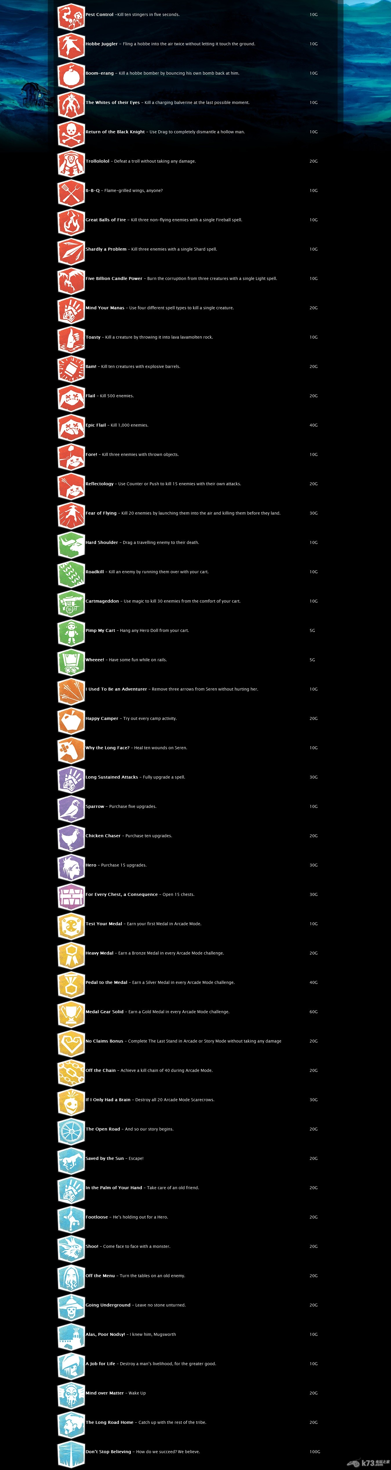 《神鬼寓言》系列作品的威名想必无人不知无人不晓吧!这款作品以其超高的游戏自由度而闻名业界,而最新的《神鬼寓言 旅程》作为一款现世代主机游戏,奖杯系统可谓必不可少,下面就给大家带来本作的全部50个奖杯的列表。