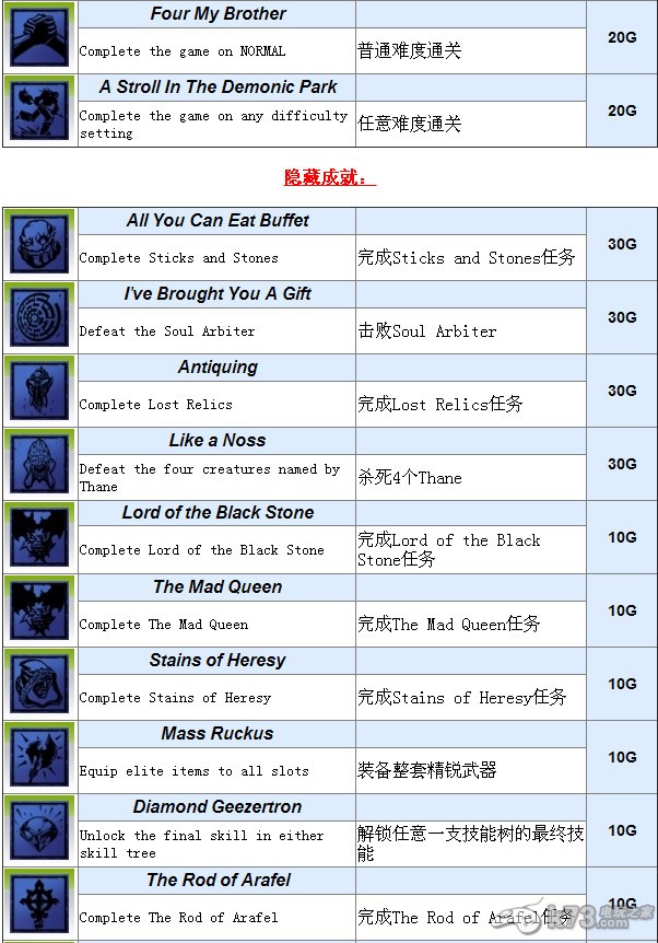 作为一款家用机作品,《暗黑血统2》当然也具备其它游戏的特点,那就是成就系统。本作中除了一些主线中获得的成就以外,还有非常多的隐藏成就可以获得,下面就给大家带来本作中全部成就的攻略。